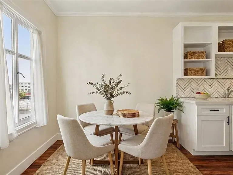 Situated in the heart of Long Beach’s East Village Arts District, this light-filled residence is located within the iconic Lafayette Building, a celebrated Art Deco landmark dating back to the 1920s. Offering 621 sq ft, the open-concept layout is thoughtfully arranged to support distinct living, dining, and sleeping zones, enhanced by generous ceiling height and classic windows that fill the space with natural light.