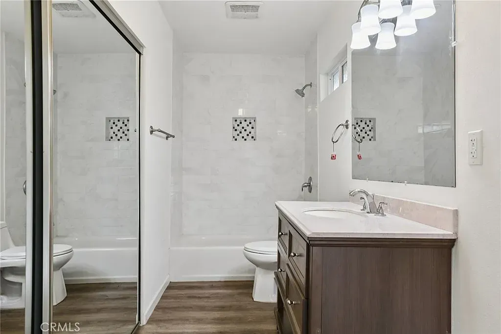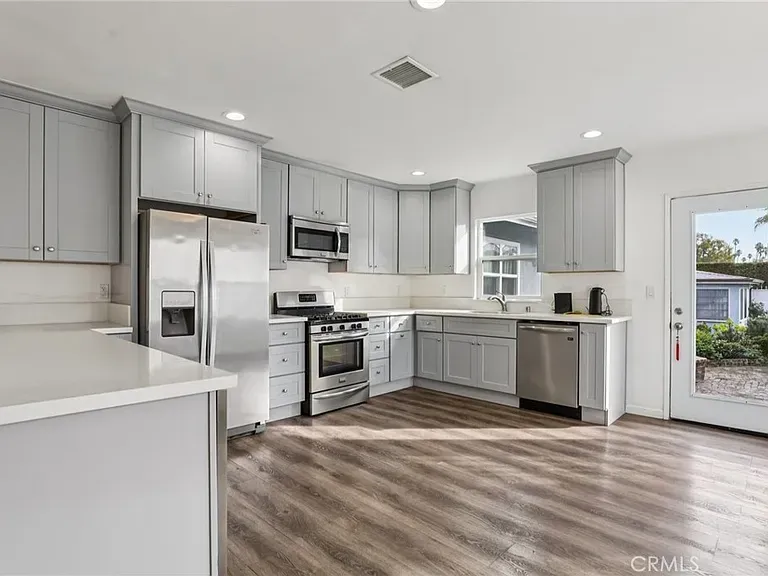 The 1,600+ sq ft main home offers a functional and inviting layout with a generous living room, dedicated dining area, and a large kitchen designed for everyday living and entertaining. New 30 year composition shingle reroof and upgraded plumbing and drain lines. New electrical throughout including a 200 AMP electrical service with central heating and air conditioning along with new LOW-E 3 dual pane windows. The remodel includes new kitchen and bathrooms with all new tile, cabinets and vanities, quartz counters, flooring, molding and lighting. New landscaping with automatic irrigation, long driveway and large one car garage leaves plenty of room for parking. The bedrooms are thoughtfully arranged for privacy, with ample closet space and well-proportioned rooms. A covered front porch creates a welcoming entry and an ideal place to enjoy the Southern California climate.