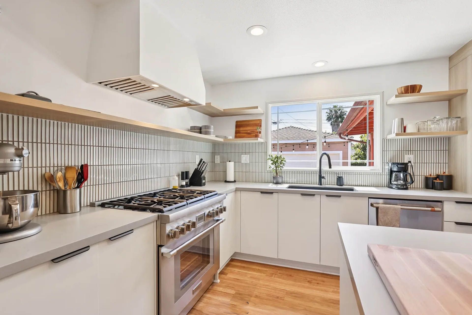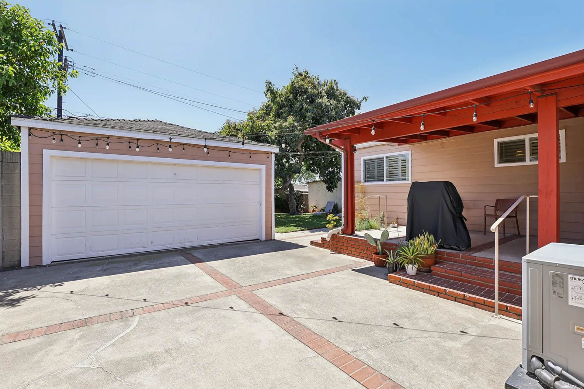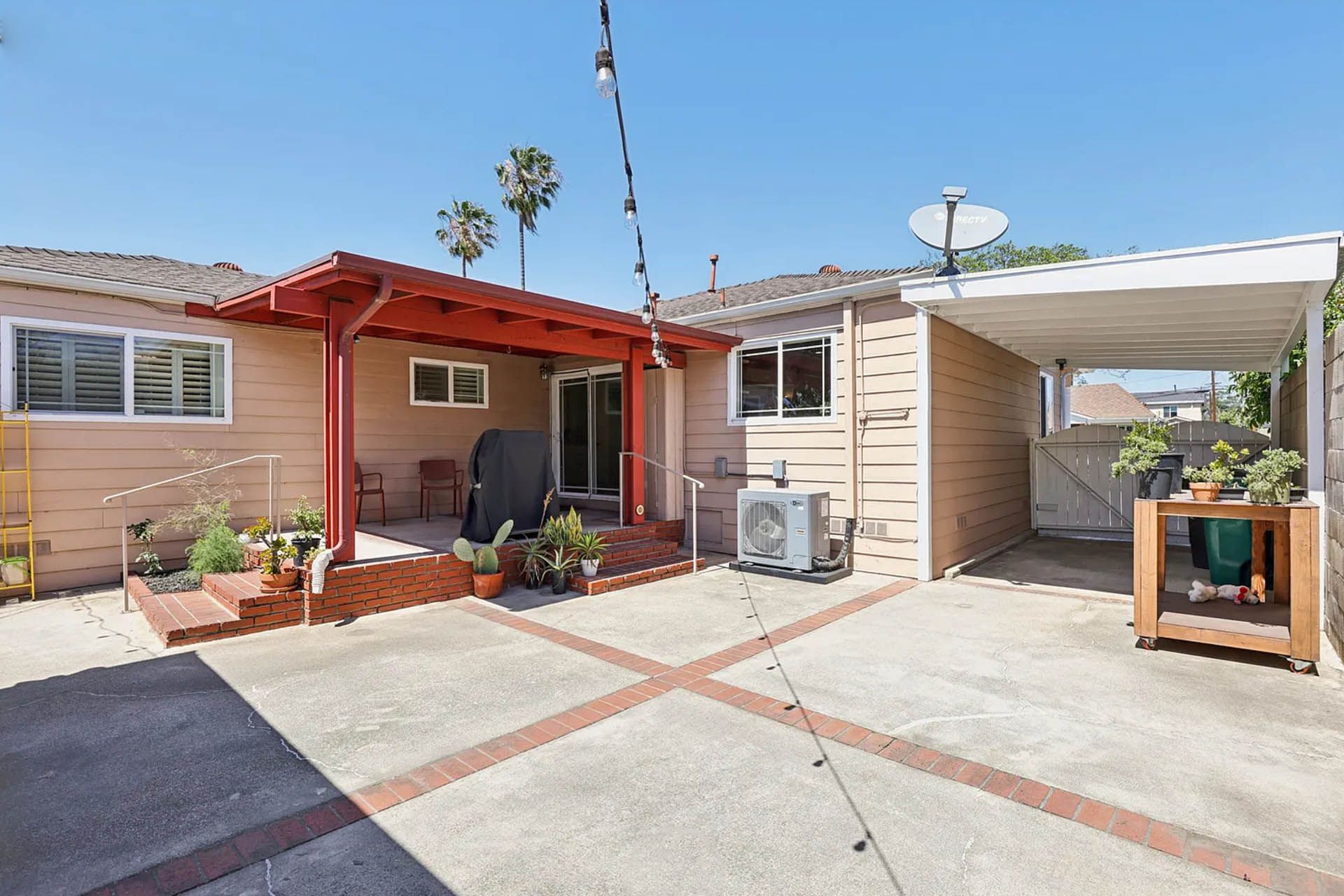 Located in the central heart of the coveted Wrigley Heights neighborhood, welcome home! This meticulously maintained and well upgraded home has been thoughtfully redesigned for comfortable and convenient living. Entering from a brick-accented entry and porch, the foyer and living room provide a spacious area for entertaining, natural light spilling through a charming bay window fitted, like most throughout the home, with custom plantation shutters. Rearward, a centerpiece to the home, is a top-notch chef's kitchen. Fully remodeled, it boasts an expansive stone-topped island, copious amounts of cabinet storage solutions, high-end matching Thermador® appliances, and thoughtful open shelving to display one's finest and interesting pieces of cook and dish ware. The open, airy plan continues to the adjacent dining room, fitted with a sideboard built to match the design of the kitchen, and equipped with a sliding door leading to the rear yard. For sleeping quarters, two bedrooms can be found at the front and middle of the home, while the primary suite is insulated from these first bedrooms with the hall bathroom between. All of these rooms are fitted with plenty of closet space, expanded from the original 1940's design. The rear yard includes such features as a covered carport behind gates, a covered patio area, 2-car detached garage, and, perhaps most importantly, a green lawn shaded by a beautiful, mature and producing avocado tree. Home system upgrades include: energy-efficient heat pump system, tankless water heater, 200A electrical panel, and dual-pane windows throughout. Do not sit on this opportunity to become part of a wonderful community in a sleepy, lightly-trafficked pocket of Long Beach!